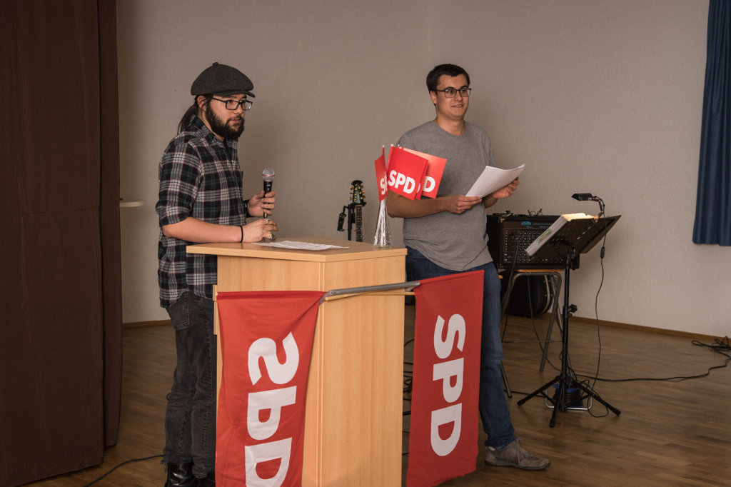 In diese Lücke sind also die Jusos gesprungen und haben sich als Poetry Slammer versucht. Immerhin hatten wir zwei Texte und mit Richard Schmidt einen hervorragenden Moderator. Nur der Herr von der Presse schien nicht so recht verstanden zu haben, was wir da genau trieben 😀